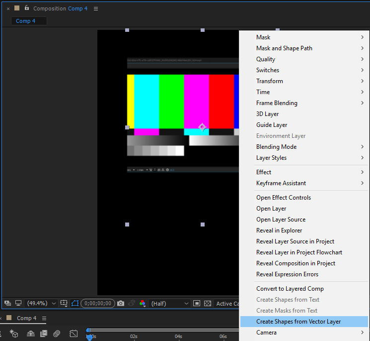 If you have imported a layered vector graphics file, right-click the vector layer and choose Create Shapes from Vector Layer. After Effects converts the vector layer into shape layer that you can animate.