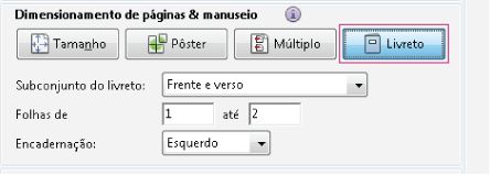 (Clique em Mais opções em Páginas a imprimir.) Imprime a área atualmente visível, as páginas selecionadas ou o texto e os gráficos copiados com a ferramenta Instantâneo. O nome da opção muda se você selecionar as páginas ou se usar a ferramenta Instantâneo.
