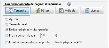 O menu Escala de página na caixa de diálogo Imprimir mostra opções adicionais, mas não é possível pré-preencher a caixa de diálogo com nenhuma daquelas opções. Escolha uma dessas opções ao imprimir.
