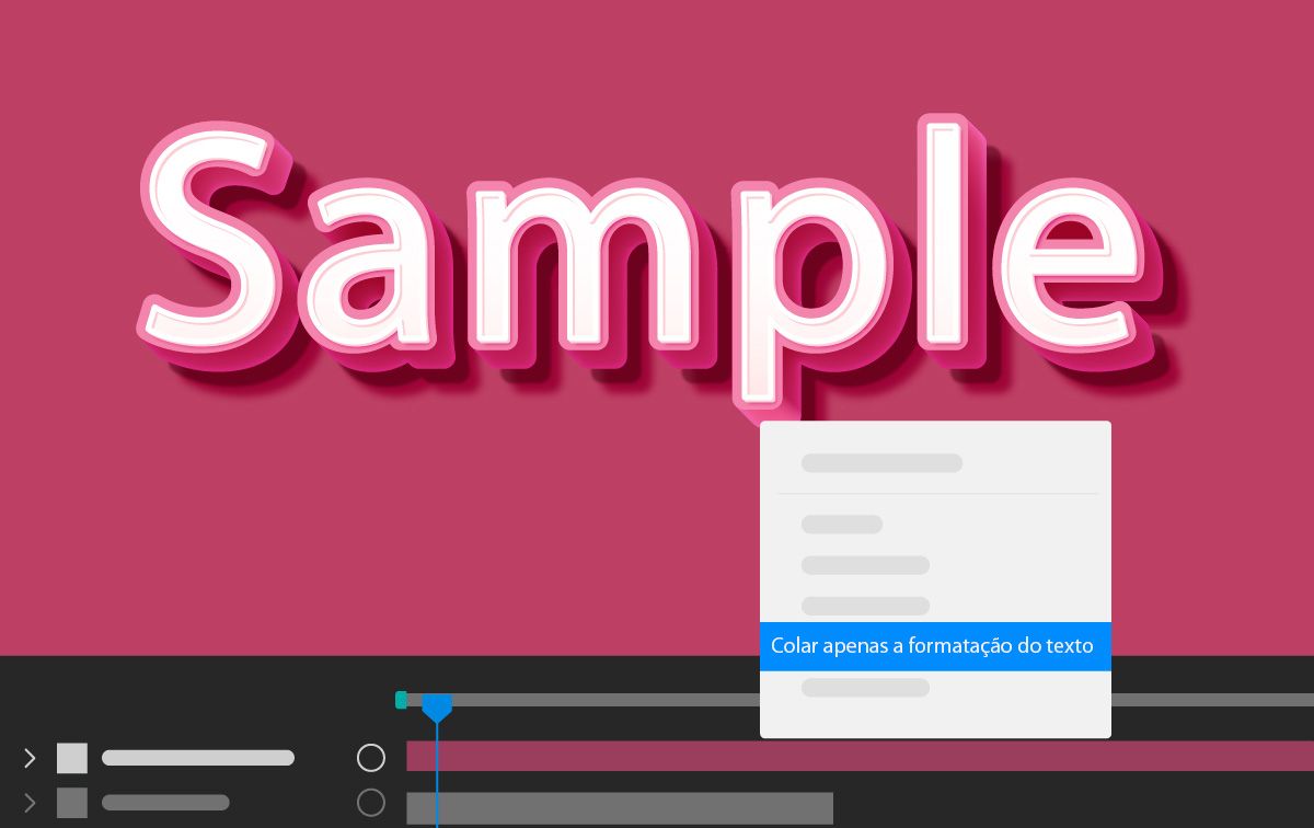 Aplique somente a formatação de texto a uma camada inteira de Texto ou a uma palavra específica usando o comando Colar somente formatação de texto.