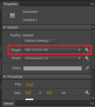 - Crie ou abra um documento AIR for iOS existente.