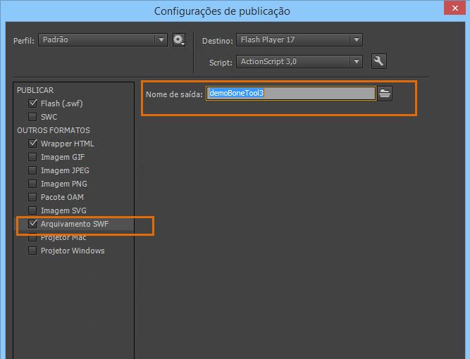 Selecione um documento do ActionScript > Arquivo > Publicar configurações > Outros formatos > Arquivo do SWF.