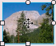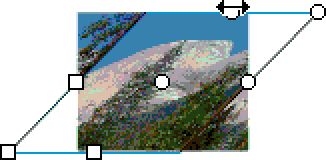 Clique na área preenchida com gradiente ou bitmap. Aparece uma caixa delimitadora com alças de edição. Quando o ponteiro está sobre qualquer uma dessas alças, ele muda para indicar a função da alça.