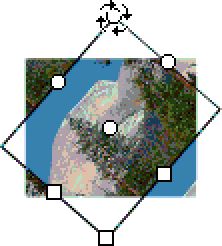 O ícone de rolagem da alça de tamanho (ícone médio da alça na borda da caixa delimitadora) é um círculo com uma seta no seu interior.