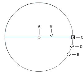 Controles de gradiente radial A. Ponto central B. Largura C. Rotação D. Tamanho E. Ponto focal.