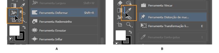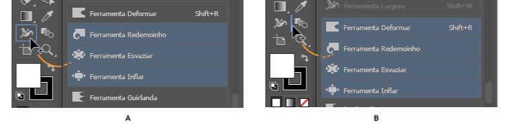 Mantenha a tecla Alt (Windows), ou Option (macOS), pressionada e clique em uma ferramenta para navegar pelas ferramentas ocultas e selecioná-las.
