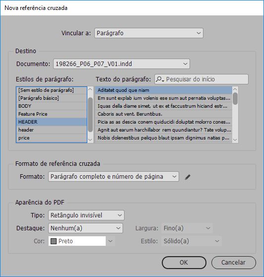 Para aplicar um estilo de caractere a toda a referência cruzada, selecione 'Estilo de caractere para referência cruzada' e escolha ou crie o estilo de caractere no menu.