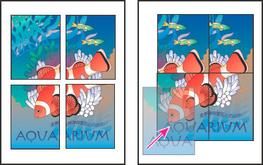 O InDesign pode dividir automaticamente um documento em blocos gráficos, ou você pode especificar os blocos gráficos. A divisão manual em blocos gráficos permite que você controle o ponto de origem para o canto superior esquerdo do bloco gráfico, determinando onde a página ficará localizada no papel.