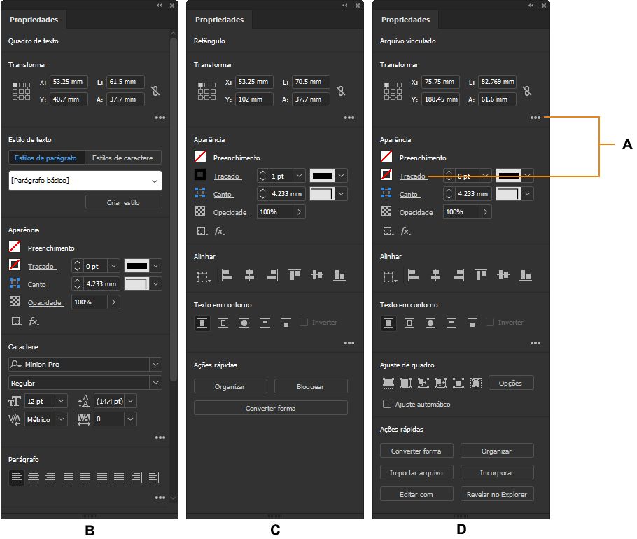 Saiba mais sobre como usar o painel Propriedades para acessar controles contextuais no InDesign.