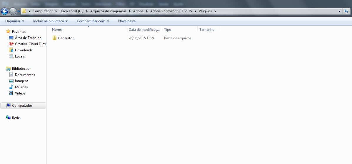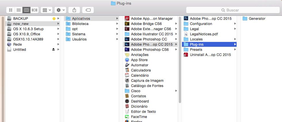 Se você instalou no local específico da versão do Photoshop, a pasta Plug-ins do Photoshop pode ser encontrada aqui: