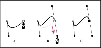Observação:Para alterar temporariamente a Ferramenta Caneta em Ferramenta Converter ponto de ancoragem, posicione a ferramenta Caneta sobre um ponto de ancoragem do objeto e pressione a tecla Alt (Windows) ou a tecla Option (Mac OS).