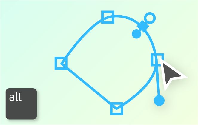 As alças de Bézier fornecem controles bidirecionais que permitem a você alterar a curva do segmento de linha entre a alça e o próximo ponto de cada lado.
