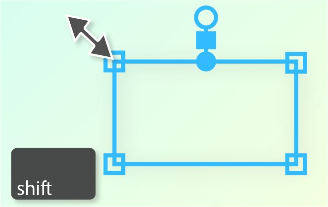 Para redimensionar uma máscara, coloque o cursor fora (mas próximo) de um vértice e pressione Shift (o cursor se transforma em uma seta dupla