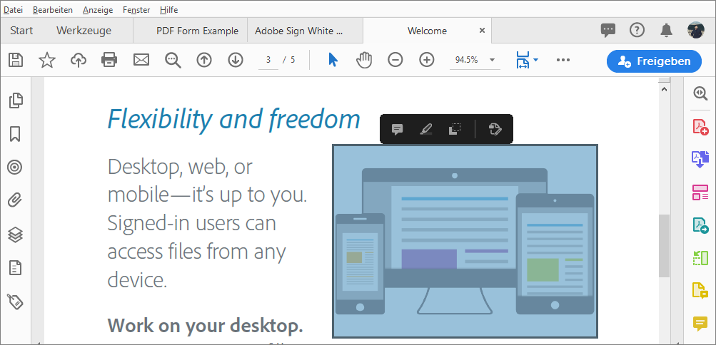 Kommentarleiste in Acrobat