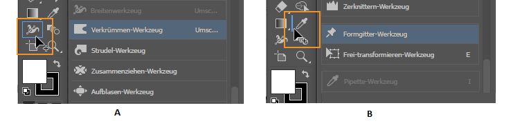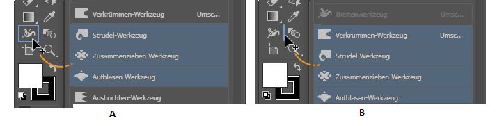 Klicken Sie bei gedrückter Alt- (Windows) bzw. Wahltaste (macOS) auf ein Werkzeug, um die verborgenen Werkzeuge zu durchlaufen und auszuwählen.