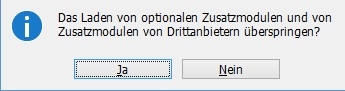 Klicke auf „Ja“, um das Laden optionaler und Drittanbieter-Plug-ins zu überspringen.