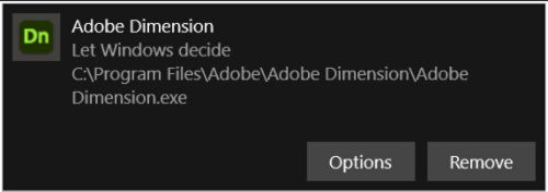 - Under Select a program to customize option locate Adobe Dimension in the list.
