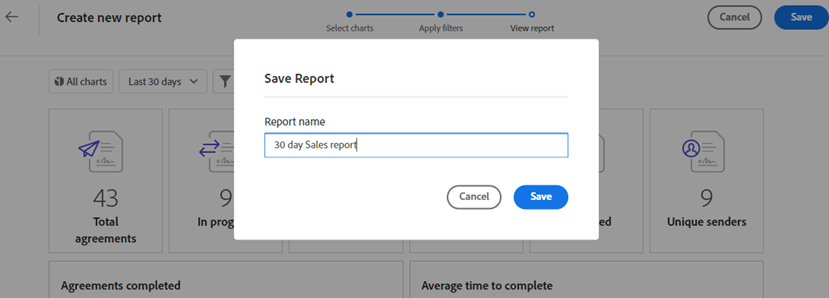 Aftalerapporter giver brugeren mulighed for at oprette en visning af aftaler inden for en defineret tidsramme og repræsenteres i en numerisk oversigtstabel med mindst ét diagram (diagramtypen afhænger af den rapport, du kører).