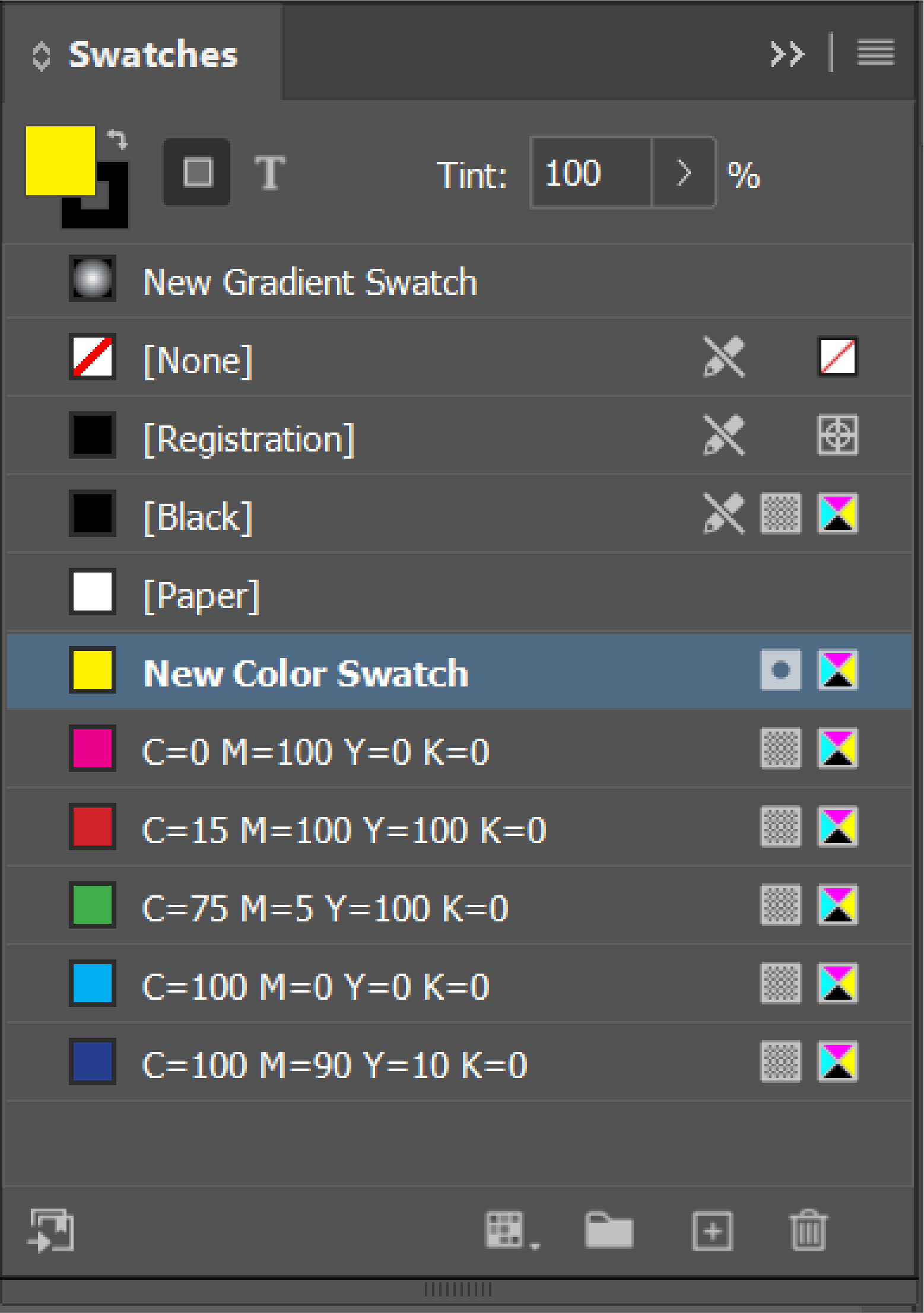 Valitse Värimallit-paneelivalikosta Uusi värimalli.