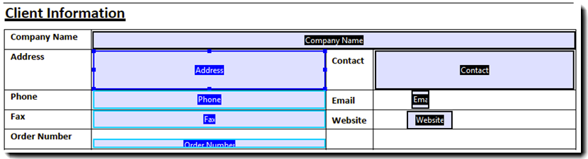 Valitse sekä osoite- että kontaktikenttä. Huomaat, että kenttien rajat saavat toisen värin kuin muilla kentillä. Tämä merkitsee, että ne ovat valittuina.
