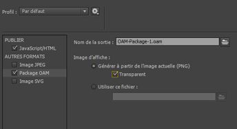 Sélectionnez Fichier > Paramètres de publication > Package OAM. Cochez la case Package OAM.