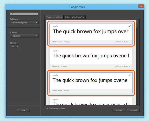 Sélectionnez la boîte de dialogue Google Fonts. boîte de dialogue Sélectionnez la boîte de dialogue Google Fonts. boîte de dialogue -