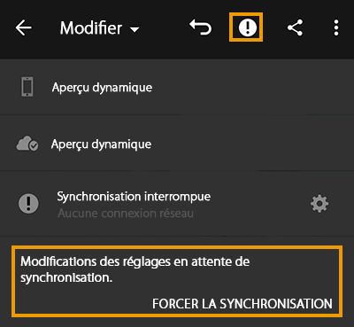 Pour forcer la synchronisation des réglages de l’image en attente à l’aide des données de votre réseau cellulaire, procédez comme suit :