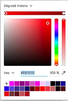 Vous pouvez utiliser le sélecteur de couleurs Dégradé pour choisir les couleurs et définir l’opacité des dégradés.