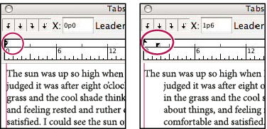 First-line indent (left) and no indent (right) First-line indent (left) and no indent (right) Select the top marker and type a value for X to indent the first line of text. Select the bottom marker and type a value for X to move both markers and indent the entire paragraph.