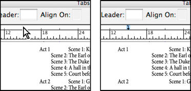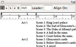Tabs position text at specific horizontal locations in a frame. The default tab settings depend on the Horizontal ruler units setting in the Units & Increments preferences dialog box.