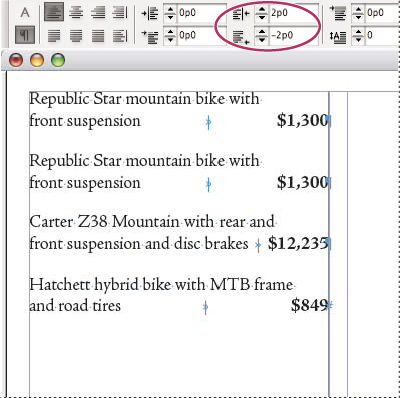 You can use the Last Line Right Indent option to add a hanging indent on the right side of the last line in a paragraph. This option is especially useful for right-aligning prices in a sales catalog.