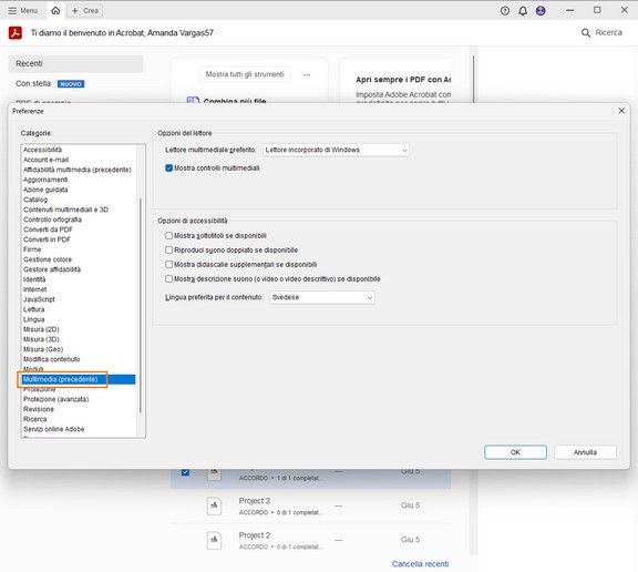 Puoi controllare i File multimediali supportati in Adobe Acrobat o Adobe Acrobat Reader