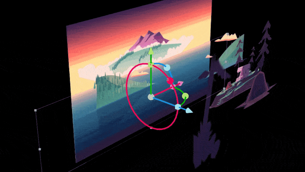 - Quando selezioni più livelli 3D contemporaneamente, ora puoi manipolarli insieme utilizzando un unico gizmo 3D.