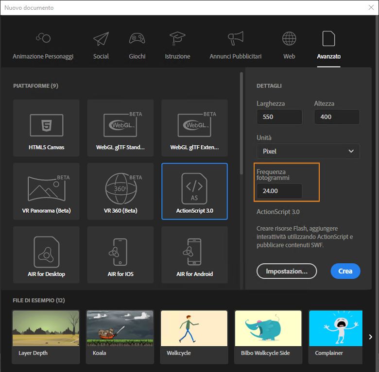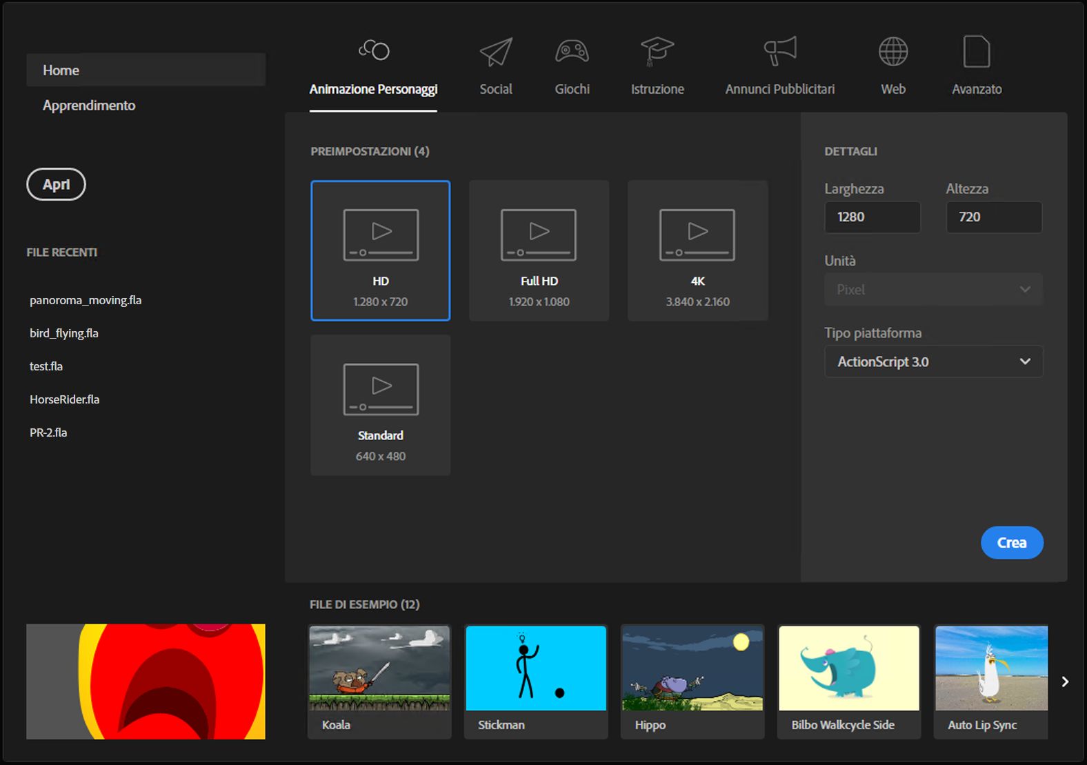2. Convertire progetti Animate in altri formati di tipi di documenti