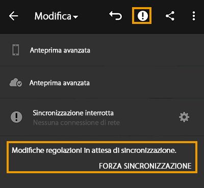 Per forzare la sincronizzazione di qualsiasi modifica dell’immagine in sospeso utilizzando i dati della rete cellulare, effettua le seguenti operazioni: