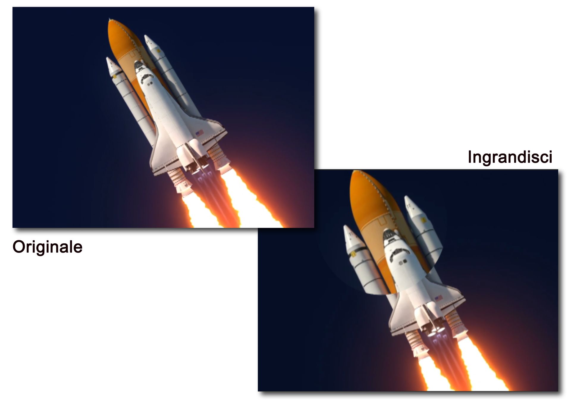 L'effetto ti permette di ingrandire tutta o parte di un'immagine, come usando una lente d'ingrandimento, o di scalare l'intera immagine oltre il 100% senza perdere qualità.