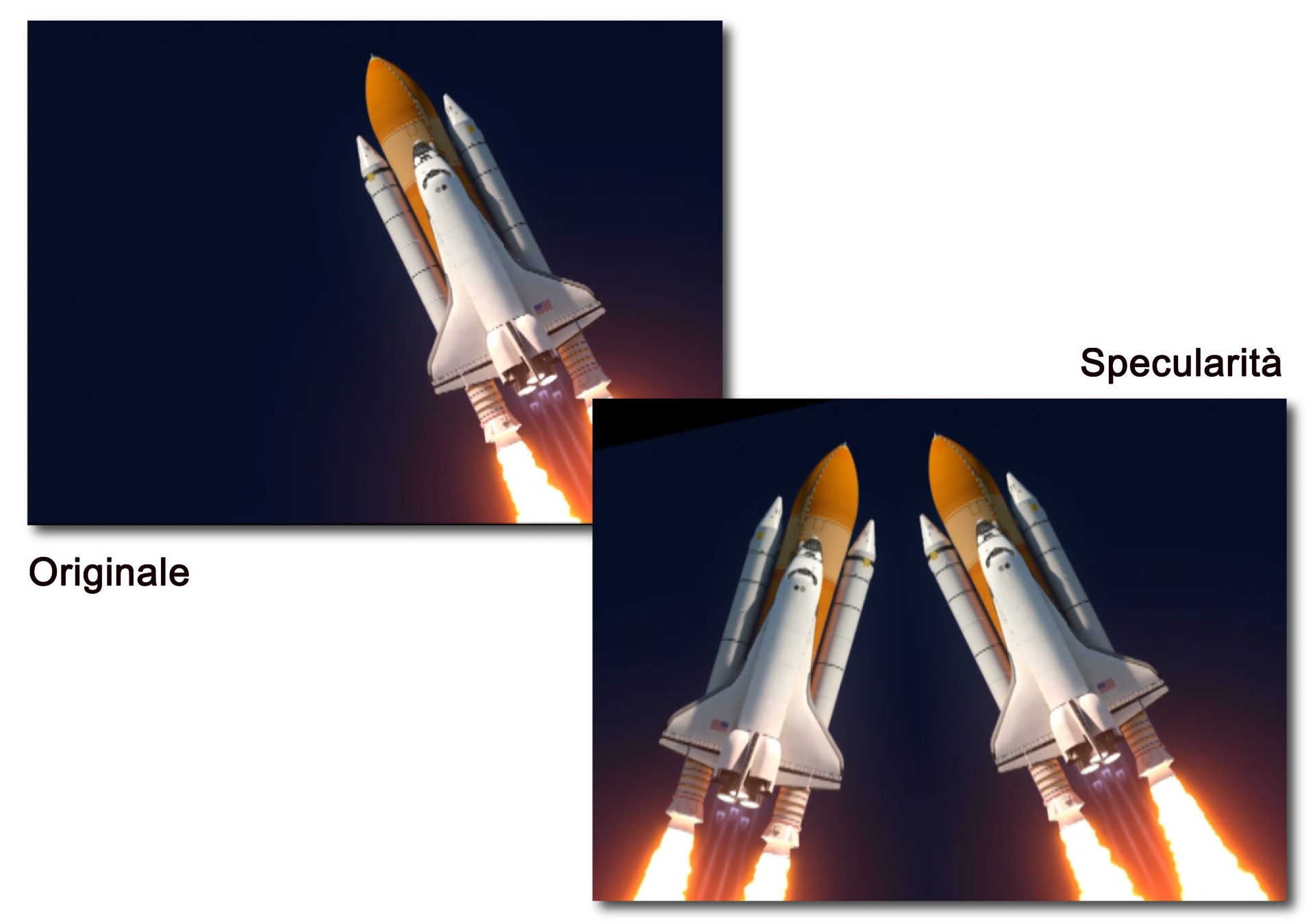 L’effetto Specularità suddivide l’immagine lungo una linea e ne riflette un lato sull’altro.