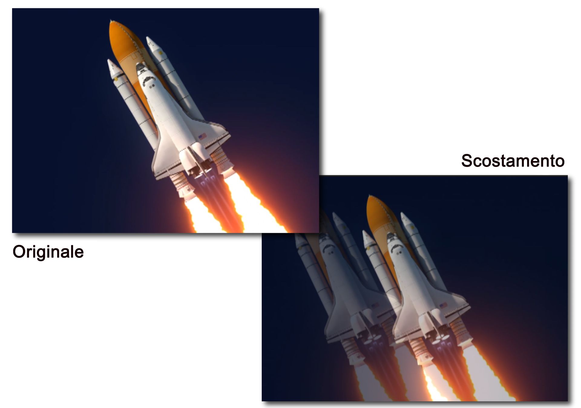 L’effetto Scostamento esegue il panning dell’immagine in una clip. Le informazioni visive spinte oltre un lato dell’immagine vengono visualizzate sul lato opposto.