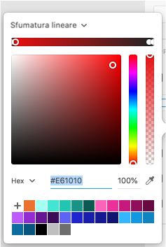 Dal selettore colore, seleziona Sfumatura lineare, Sfumatura radiale o Sfumatura angolare dall'elenco a discesa.