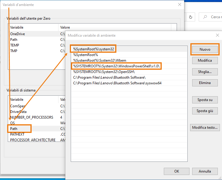 Fai doppio clic su Percorso nella sezione Variabili di sistema.