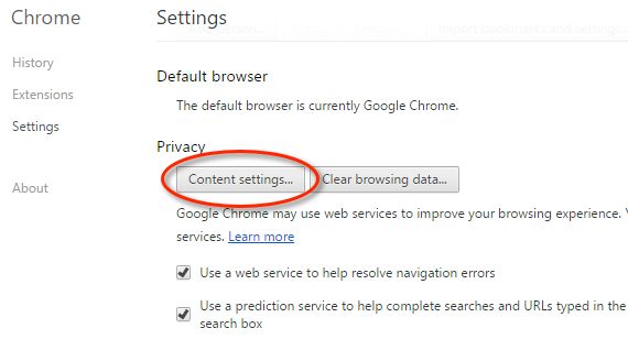 「プライバシー」で、「コンテンツの設定」をクリックします。