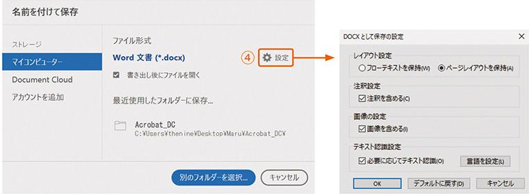 3 保存場所を指定する際、「設定」④をクリックすると保存時の設定を行うことができます。