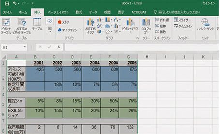 2 Excelを開き、Control+Vキーを押して、Acrobatでコピーしたエリアを貼り付けます。