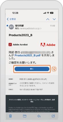 5 モバイルを利用して共有レビューへ参加することも可能です。共有レビューの依頼メールを受信後、「レビュー」⑤をクリックしてDocument Cloudにあるレビューファイルを開き、注釈を追加⑥することができます。