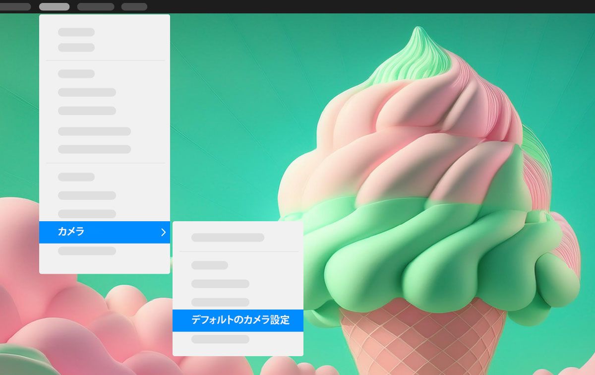 表示メニューを使用して、カスタムビューとデフォルトカメラ設定を調整します。これは、カメラレイヤー、デフォルトのアクティブカメラ、カスタムビューのいずれで表示している場合でも調整できます。