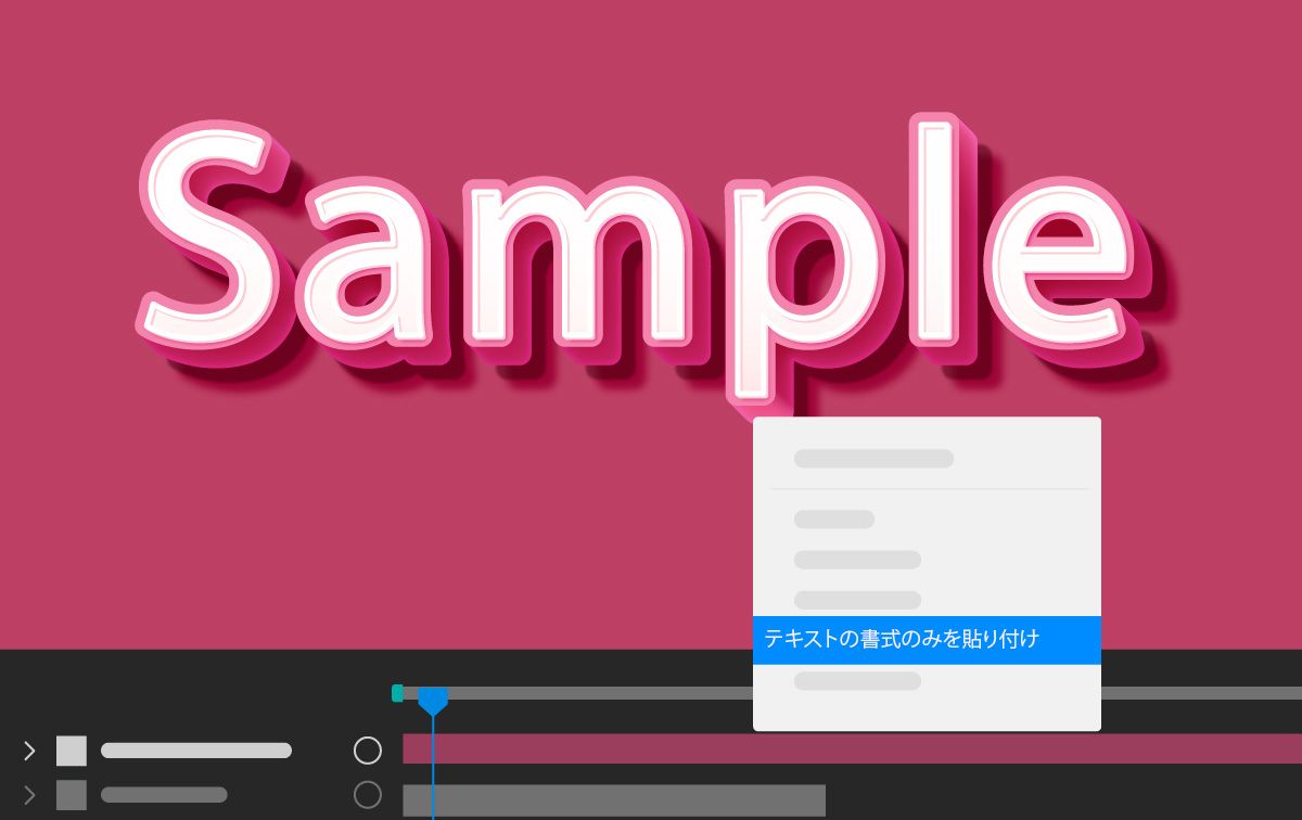 「テキスト書式設定のみをペースト」コマンドを使用して、{1}テキスト{2}レイヤー全体または特定の単語にテキスト書式設定のみを適用します。