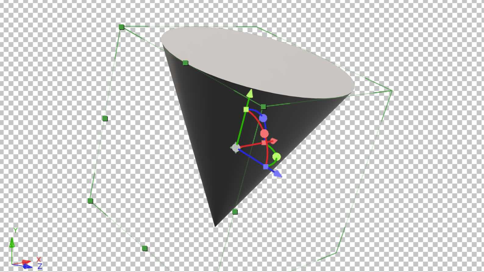 横方向にドラッグして円錐の半径を大きくし、縦方向にドラッグして高さと円錐が向く方向を調整します。