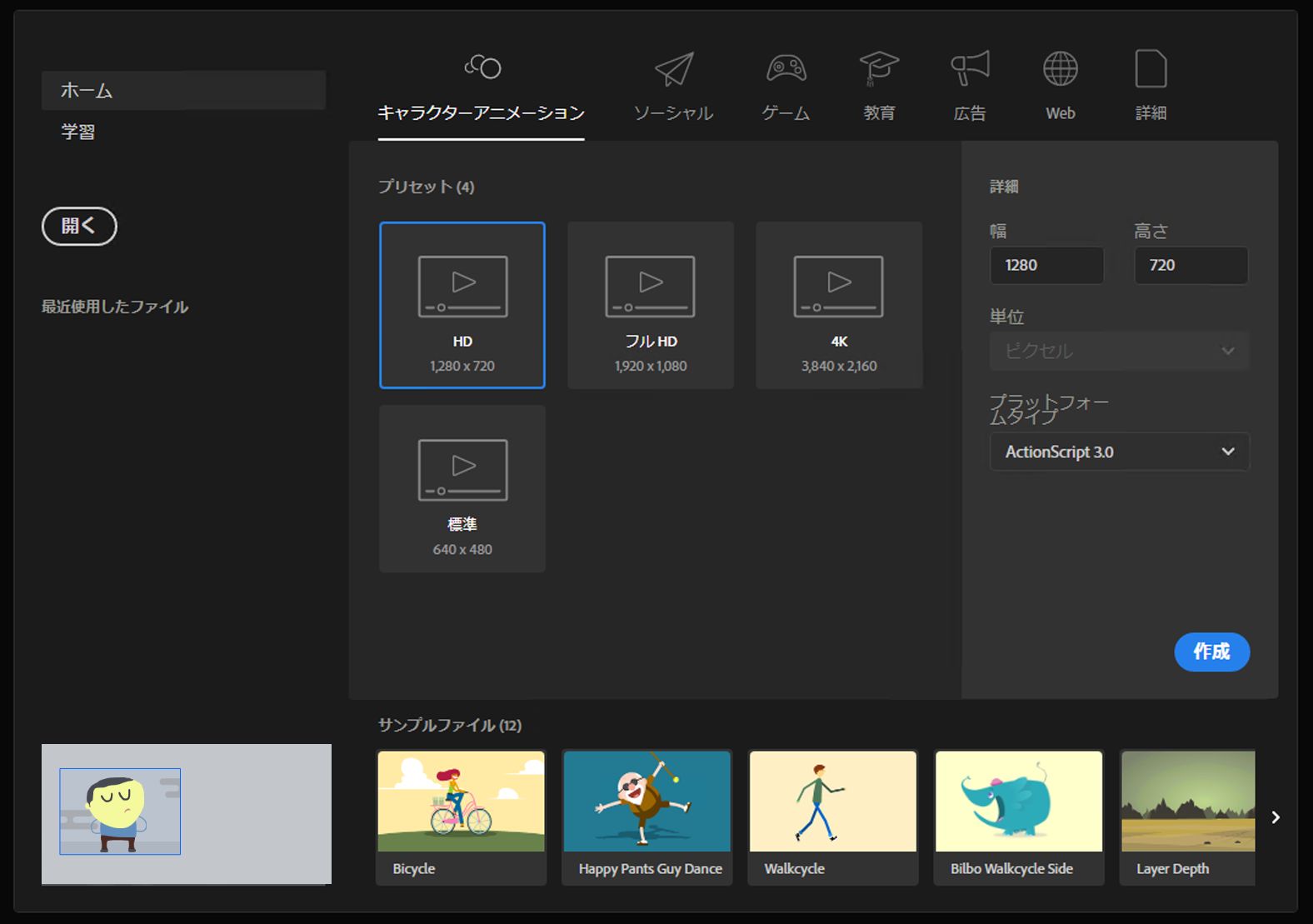 2. 他のドキュメントタイプ形式への Animate プロジェクトの変換