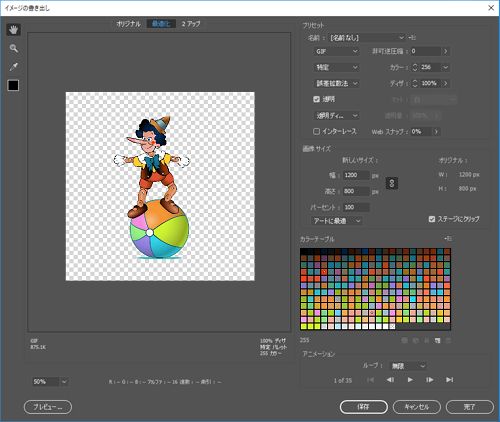 書き出す GIF のサイズは、4000 ピクセル未満に制限されます。このサイズの制限は、CS6 以降のバージョンに適用されます。