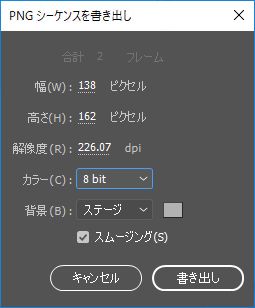最後のフレームに達した場合に書き出しを停止 最後のフレームに達した場合に書き出しを停止 - 「書き出しを停止」:Animate で書き出しを終了する場合に指定します。
